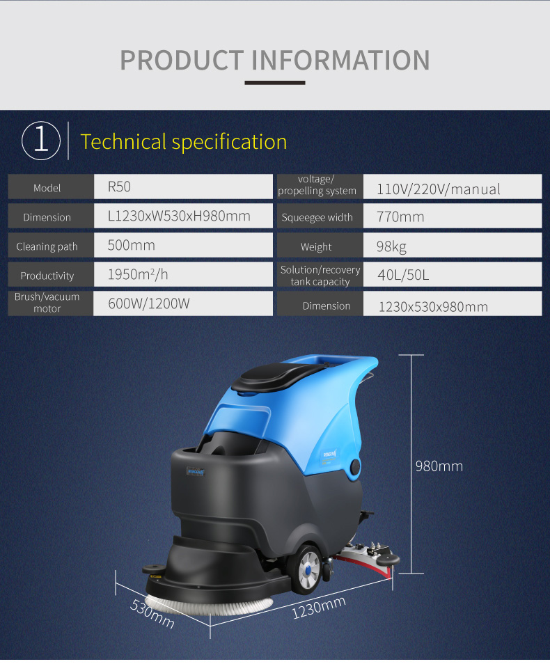 R50B Walk Behind Floor Scrubber